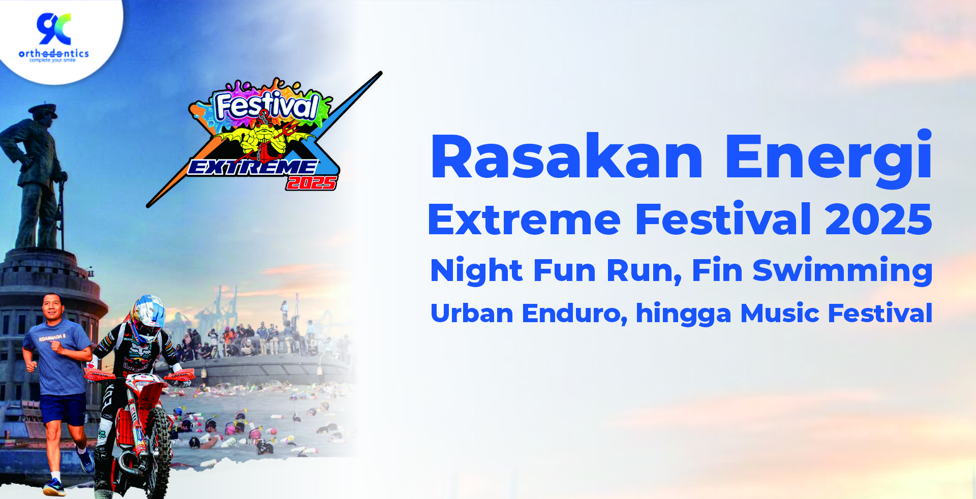 Tahun ini, gelaran paling dinanti kembali hadir dengan energi yang lebih besar, lebih meriah, dan lebih ekstrem. Extreme Festival 2025 bukan sekadar ajang hiburan, tetapi juga tempat berkumpulnya komunitas aktif dan kreatif dari berbagai kalangan. Dengan mengusung semangat gaya hidup sehat dan penuh semangat, festival ini akan menghadirkan serangkaian acara seperti Night Fun Run, Fin Swimming, Urban Enduro, hingga Music Festival yang dipastikan akan memacu adrenalin sekaligus menciptakan pengalaman yang tak terlupakan.